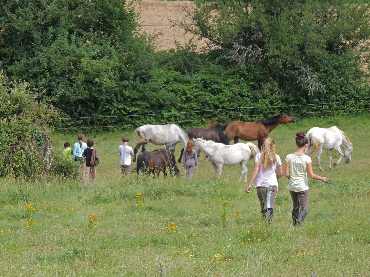 Après un peu plus de 4 heures au rythme des chevaux sur les chemins de Ste Colombe, Grand Castang puis Ste Foy de Longas, l’équipée est arrivé aux écuries de Camberoux, lieu de la halte. Le campement a été installé pour les 2 nuits après avoir soigné puis mis les équidés dans leur pré , sans compter la petite baignade dans la rivière au milieu des écrevisses. Le repas s’est effectué au pied du gîte puis les enfants ont joué aux cartes avant de s’endormir.