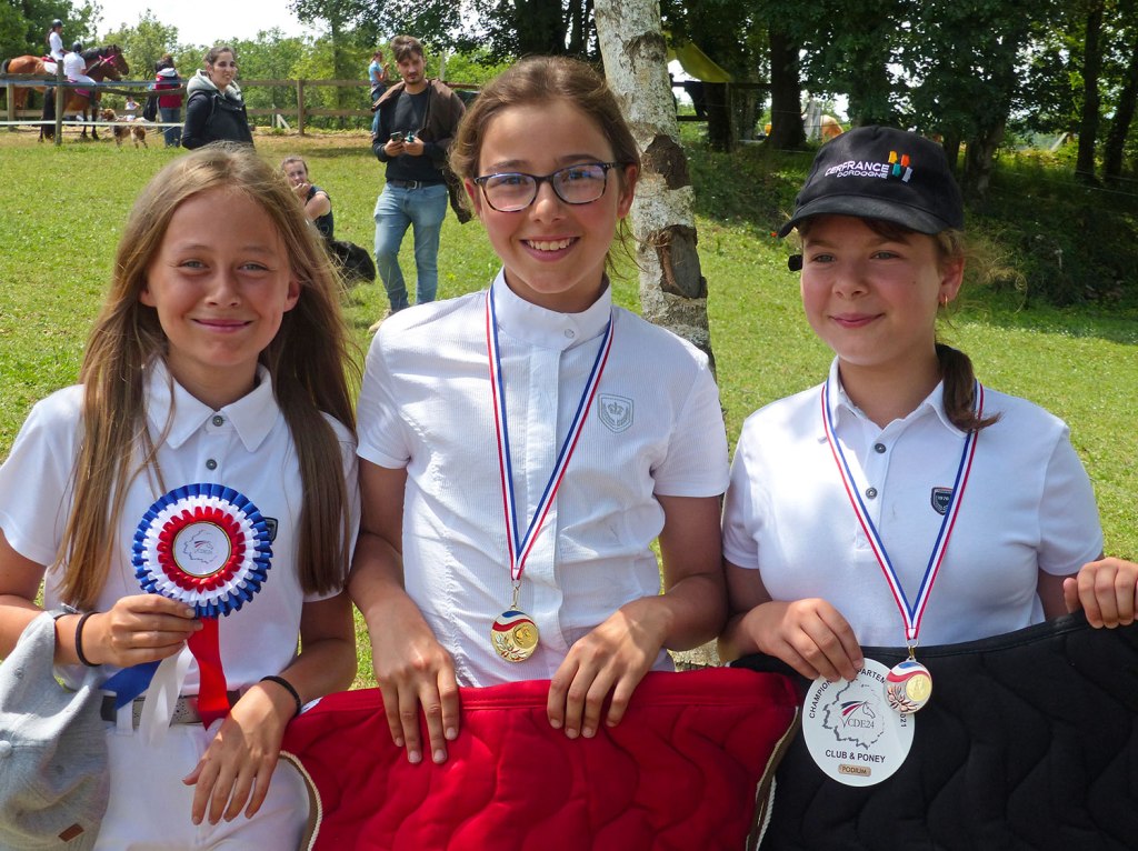 - ainsi que 2 médailles de bronze gagnées par Frédérique et son cheval Qalirob dans la Club 3 et Laura avec Tamaris pour la Poney 3,
