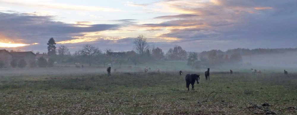 Les chevaux et poneys y vivent en petits troupeaux sur la dizaine d’hectares de prairie.